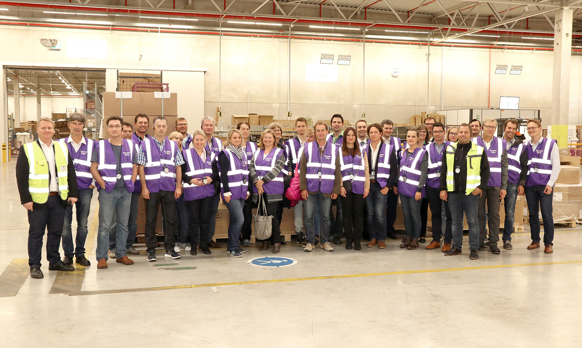 Marko Rehmböck vom „Aftersales Business Management“ der BMW Group führte die Gruppe aus 30 Teilnehmern durch das Werk. Er erläuterte zunächst, was „Aftersales“ bei BMW überhaupt bedeute, nämlich eine breite Palette von Ersatzteilen, unterschiedlichen Zubehörteilen sowie Lifestyle-Produkten vom kleinen Fanartikel bis zur kompletten Motorradausrüstung. „Der Aftersales muss stimmen“, sagte Rehmböck, denn ob in Werkstatt und Service für den Kunden alles glatt laufe, bestimme maßgeblich über den nächsten Autokauf. Daher müsse etwa ein Ersatzteil aus Wallersdorf natürlich schnell beim Kunden ankommen, „Zuverlässigkeit geht aber sogar noch vor Geschwindigkeit“, betonte Rehmböck. Die Messlatte liegt also hoch – und BMW pocht auf die Einhaltung dieser Standards. Das ist wichtig, denn das Logistikzentrum selbst wird nicht von BMW betrieben, sondern von den Firmen Kühne + Nagel und Imperial Logistics als Dienstleister. Auch die Hallen gehören nicht BMW, sondern dem Projektentwickler DIBAG Industriebau, mit dem BMW einen langfristigen Mietvertrag geschlossen hat. Daher liegen Leitung und Steuerung des Logistikzentrums in den Händen von rund 50 BMW-Mitarbeitern, der Rest der weit über 1.000 in Wallersdorf tätigen Mitarbeiter ist aber bei den Dienstleistern beschäftigt.