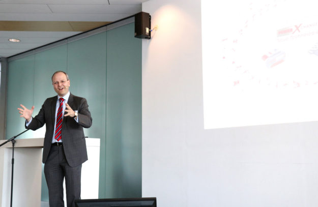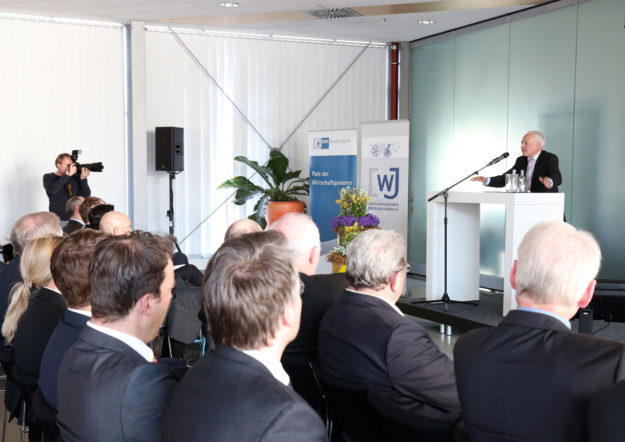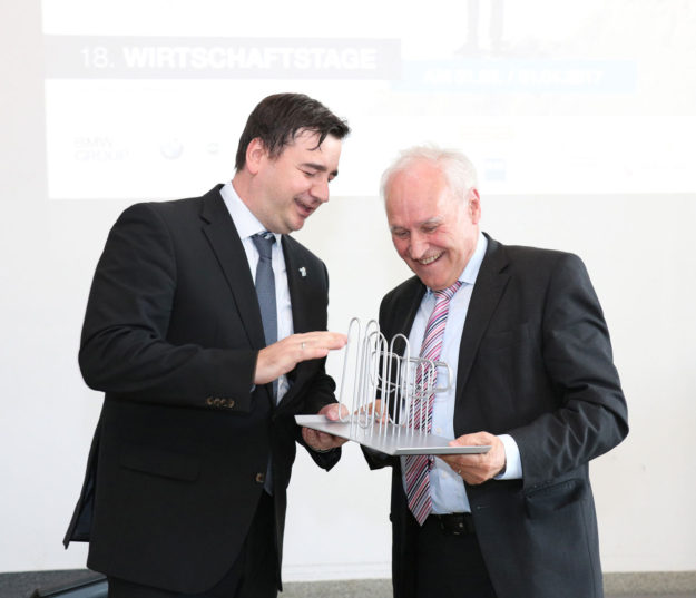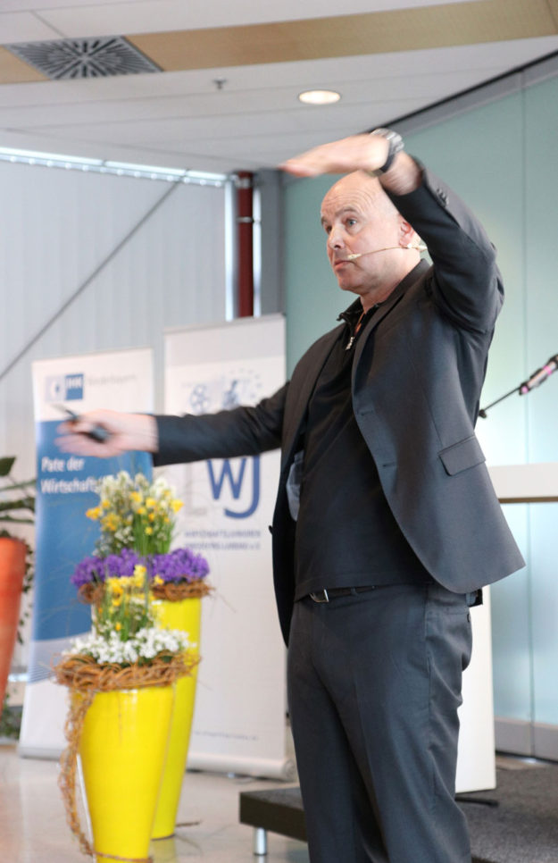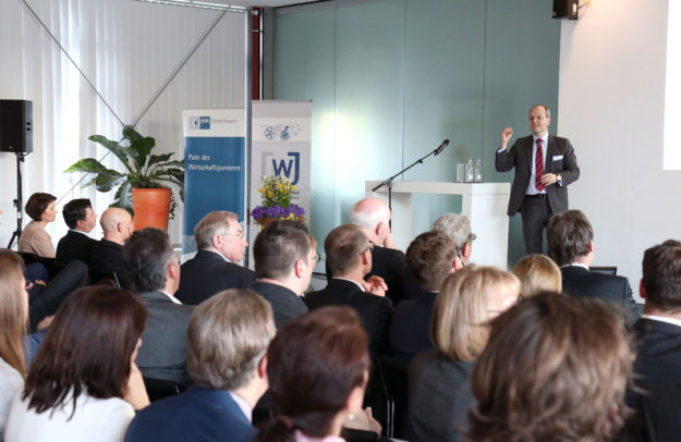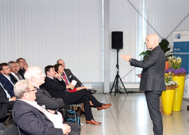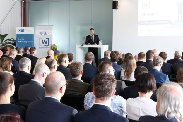 Die vier Hauptreferenten der Wirtschaftstage interpretierten deren Motto auf unterschiedliche Weise. Dr. Markus Thannhuber machte die konkreten Auswirkungen und neuen Herausforderungen der Digitalisierung auf sein Unternehmen deutlich, die Einhell Germany AG aus Landau. „In einem digitalen Markt müssen Sie agieren, und zwar ständig, laufend und schnell“, stellte Thannhuber klar. Andreas Dohmen, ehemaliger Manager und heute Berater und Dozent, rüttelte die Zuhörer auf: „Wir sind in Deutschland ein Ingenieursland. Wir denken in Produkten.“ In der digitalen Revolution seien es aber die Geschäftsmodelle, die radikalen Veränderungen unterliegen, weniger die Produkte. Er appellierte an den Mittelstand, eine Digitalisierungsstrategie zu entwickeln – und zwar ausgerichtet auf den Kunden. Der Zukunftsforscher Erik Händeler stellte das Modell der „langen Konjunkturwellen“ nach Kondratieff vor und verlängerte diese Wellen in die Welt von heute und morgen. Bei aller Technikbegeisterung lenkte er den Blick auf den Menschen, auf Sozialverhalten und Gesundheit. „Das, was den Menschen ausmacht, rückt jetzt in den Mittelpunkt“, bekräftigte der Wissenschaftler. Der ehemalige Biathlet Sven Fischer nahm viele Punkte der Vorredner wieder auf. Seine Botschaft: Ohne die Balance zwischen Körper und Geist könne man keine Spitzenleistungen erbringen, weder im Sport noch in der Wirtschaft.
